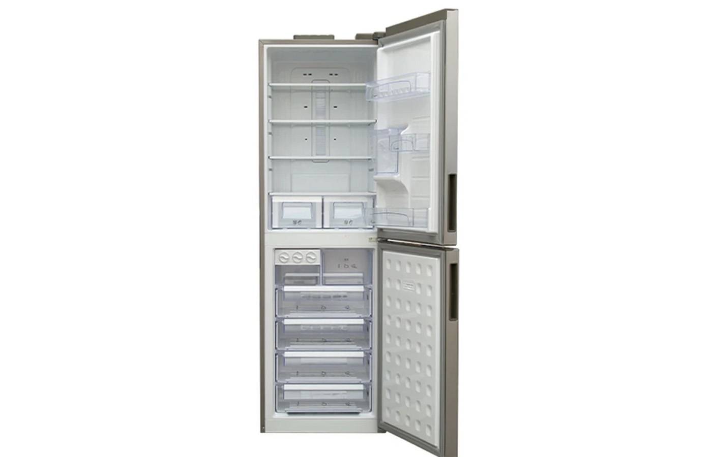 سه طبقه روی درب یخچال برای سازماندهی بطریها، لبنیات و بستهبندیهای کوچک بسیار کاربردیاند. دو کشوی بزرگ پایین، با حفظ رطوبت مناسب، فضای بهینهای برای نگهداری میوه و سبزیجات در شرایط تازه فراهم میکنند. سیستم هشدار بازماندن درب، ساختاری ساده اما حیاتی دارد که مانع از اتلاف سرمای داخلی و افزایش مصرف برق میشود. بخش فریزر با ظرفیت 123 لیتر و پنج کشوی بزرگ، انعطاف عالی در دستهبندی و ذخیره مواد غذایی منجمد ایجاد میکند. طراحی کشوها بهگونهای است که مهر و موم نسبی فضای داخلی را حفظ میکند و در ترکیب با سیستم نوفراست، مانع تشکیل برفک میشود. نوفراست نهتنها حذف فرآیند پرزحمت یخزدایی دستی را ممکن میکند، بلکه با گردش هوای سرد یکنواخت، باعث میشود سرمای مناسب به تمام سطوح و مواد غذایی برسد. این مزیت برای کاربرانی که از فریزر بهطور روزانه استفاده میکنند، تفاوت قابل توجهی در سهولت نگهداری ایجاد میکند.