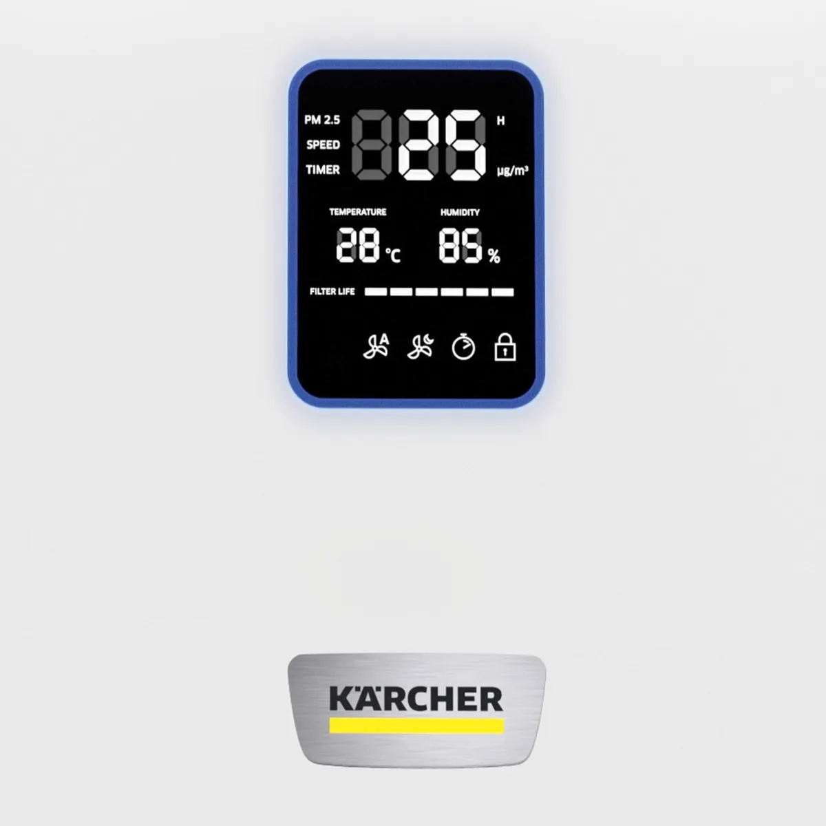 دستگاه تصفیه هوای AF50 کارچر، با استفاده از بهروزترین تکنولوژی لیزری دنیا، امکان اجرای کار در حالت اتوماتیک با تشخیص خودکار آلودگی محیط، مجهز به فیلتر هپا H 13 و فیلتراسیون کربن فعال که با یونِ نقره پوشیده شده است، توان از بین بردن تمام عوامل بیماریزا، زیرذرات ایجادکنندهی بوی نامطبوع، ذرات نادیدنی گرد و غبار و ریزذرات آلرژیزا در فضایی با مساحت 50 تا 100 متر مربع را دارد. دستگاه تصفیه هوای ای اف پنجاه کرشر برای تصفیهی هوای اتاقهای بزرگ، هال، ادارات، کافیشاپهای محلی، بوتیکها و… دستگاهی مناسب است. دستگاه تصفیه هوای AF 50 با استفاده از سیستم فیلتراسیون چند لایه، ذرات آلرژیزا و آلودگی را در چند مرحله و بسته به ابعاد ذرات جذب میکند تا هوایی پاکیزه برای تنفس شما مهیّا کند. در کنار فیلتر کربن فعال، نمایشگر کیفیت هوا به صورت حروف عددی، نشانگر کیفیت هوا به صورت رنگی و نشانگرهای دقیق دما و رطوبت نسبی از دیگر امکانات این دستگاه تصفیهی هوا هستند.