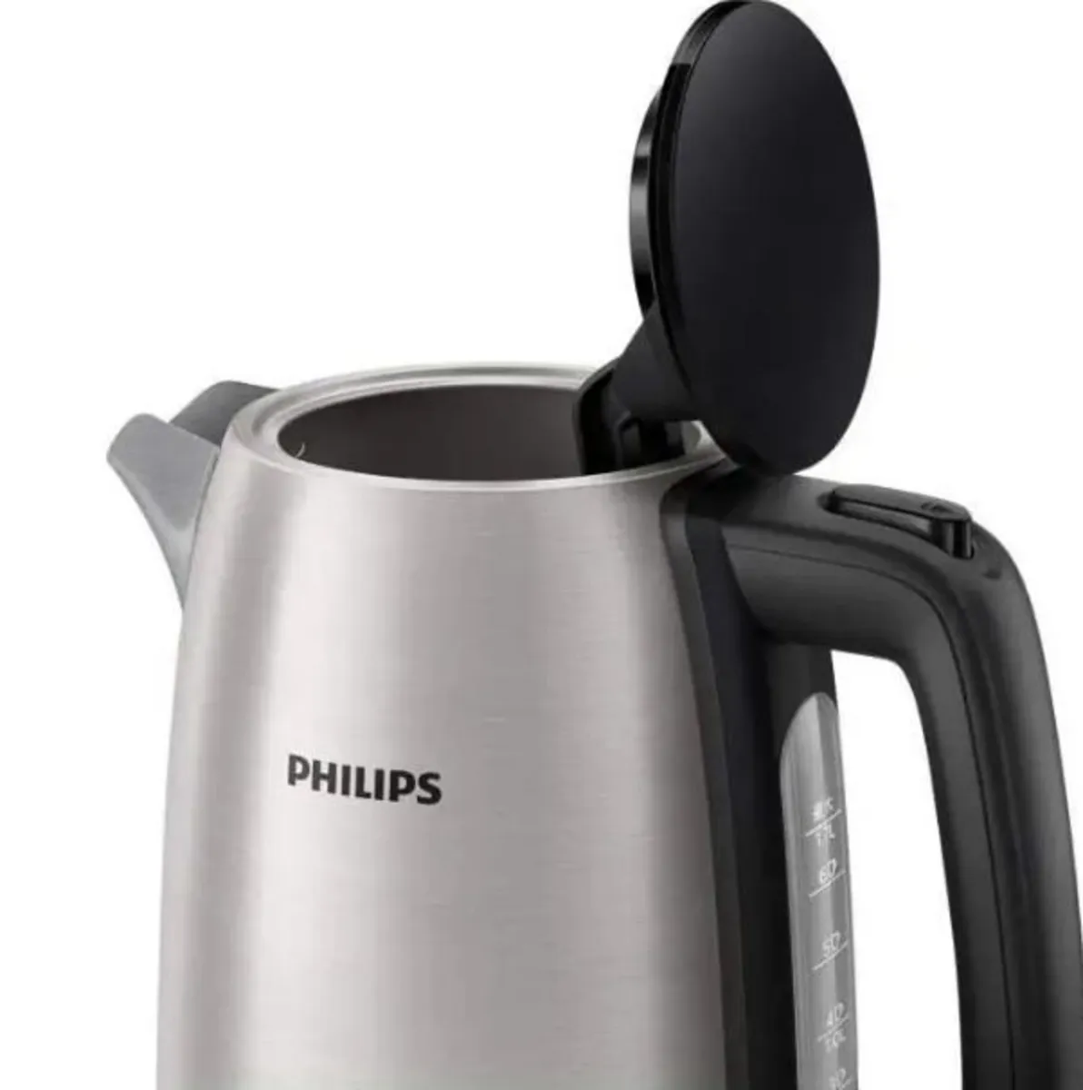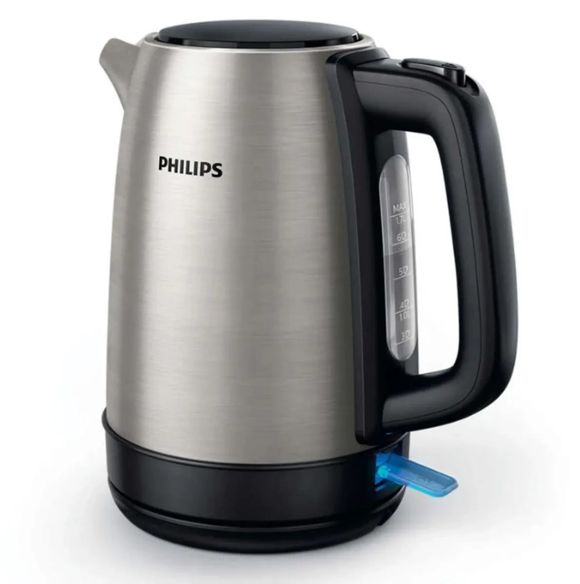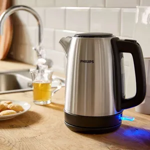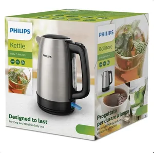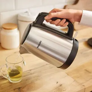 کتری برقی فیلیپس مدل HD9350 دارای بدنه ای از جنس استیل ضدزنگ است و طراحی زیبایی دارد. این کتری با داشتن شبکه های فیلتری کوچک، هر گونه رسوب را از آب میگیرد تا آب جوش آمده از کیفیت بالاتری برخوردار باشد. از نظر ایمنی نیز این محصول دو عملکرد مختلف دارد. قطع کن هنگامی که اب کمی در آن باشد و یا آب به جوش بیاید، عمل میکند و استفاده از آن را بی خطر و ساده می کند. در کتری برقی فیلیپس مدل HD9350 چراغ نشانگری برای نشان دادن روشن/خاموش بودن دستگاه تعبیه شده است. در کنار کتری نیز با وجود نشانگر میزان آب موجود در آن، قابل رویت می باشد. این کتری که توان 2200 واتی دارد، دارای حجم 1.7 لیتری میباشد و در زیر کفی 360 درجه ای آن، محفظه ای برای نگهداری سیم برق تعبیه شده است. در پایان قابل ذکر است که دستگیره این کتری، به صورت ارگونومیک طراحی شده است و هنگام استفاده از دست شما لیز نمیخورد.